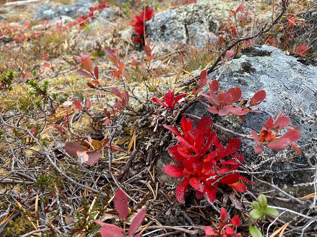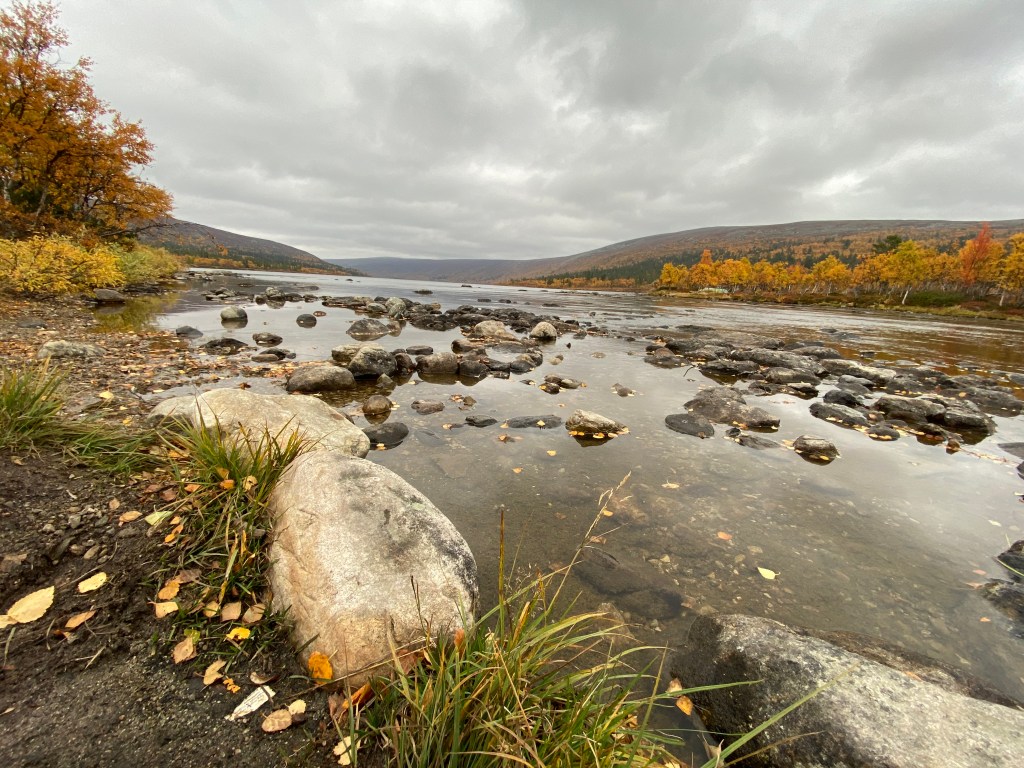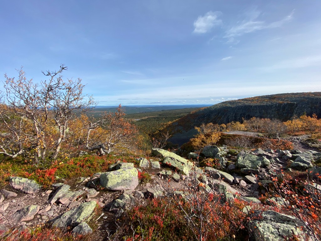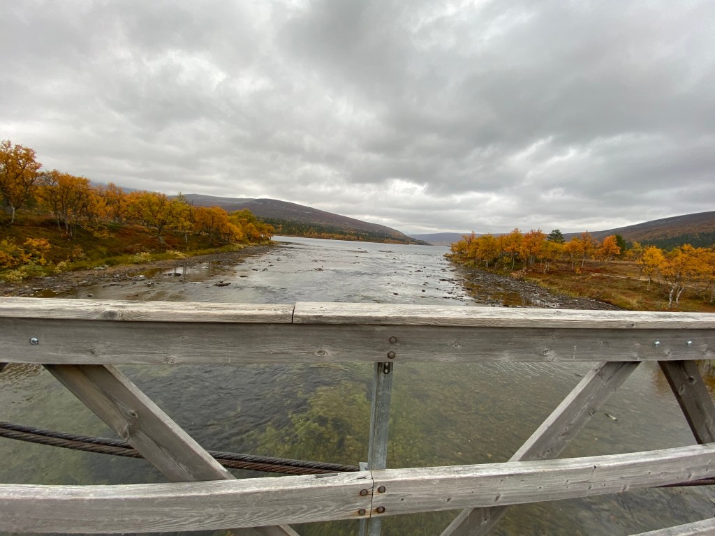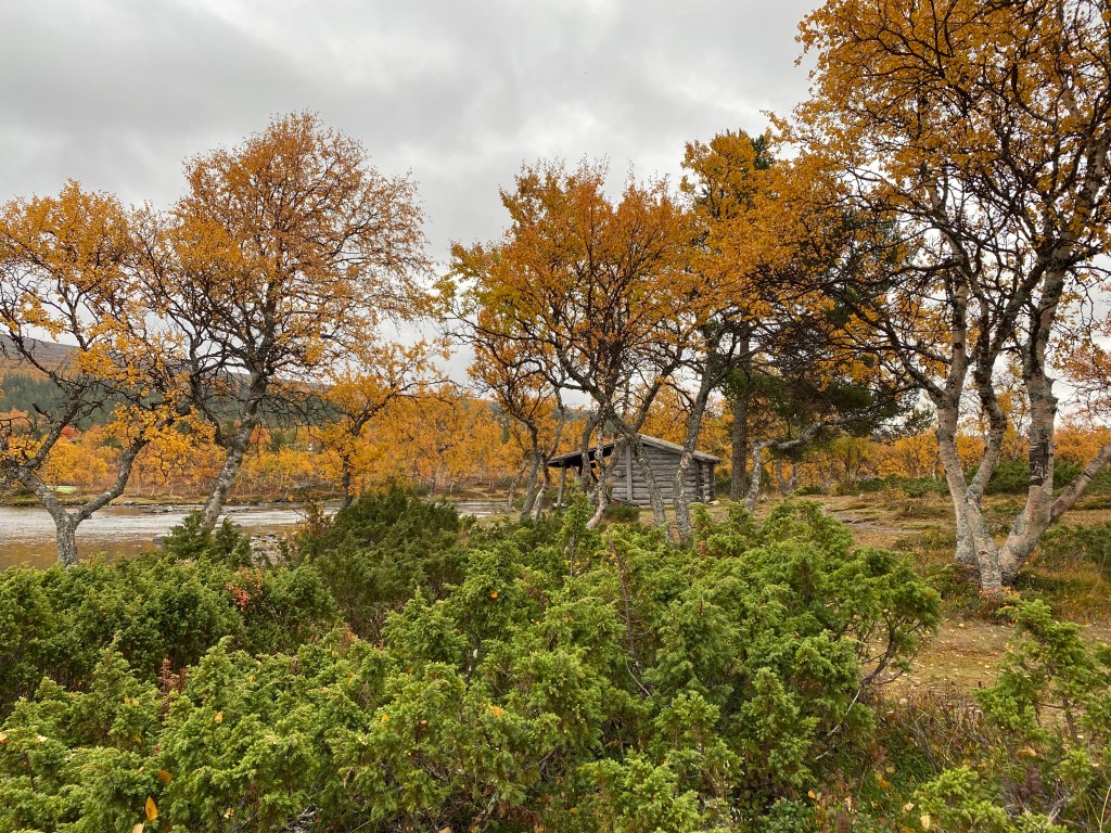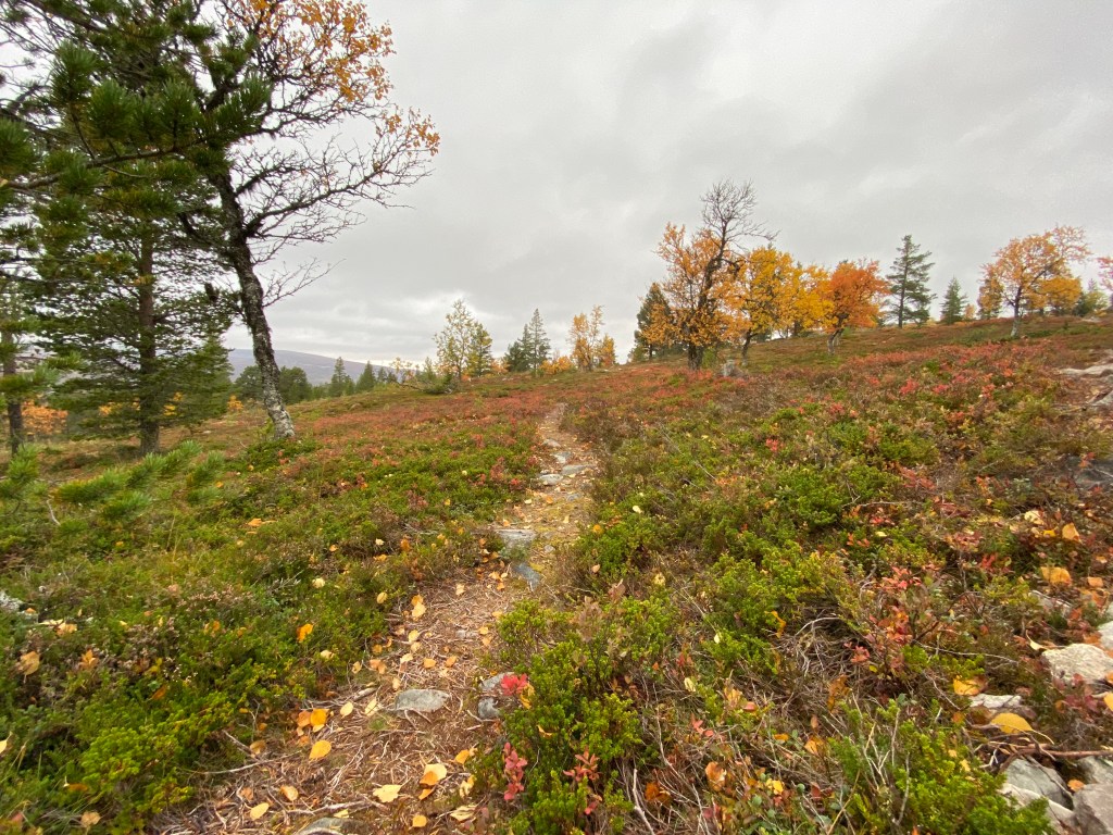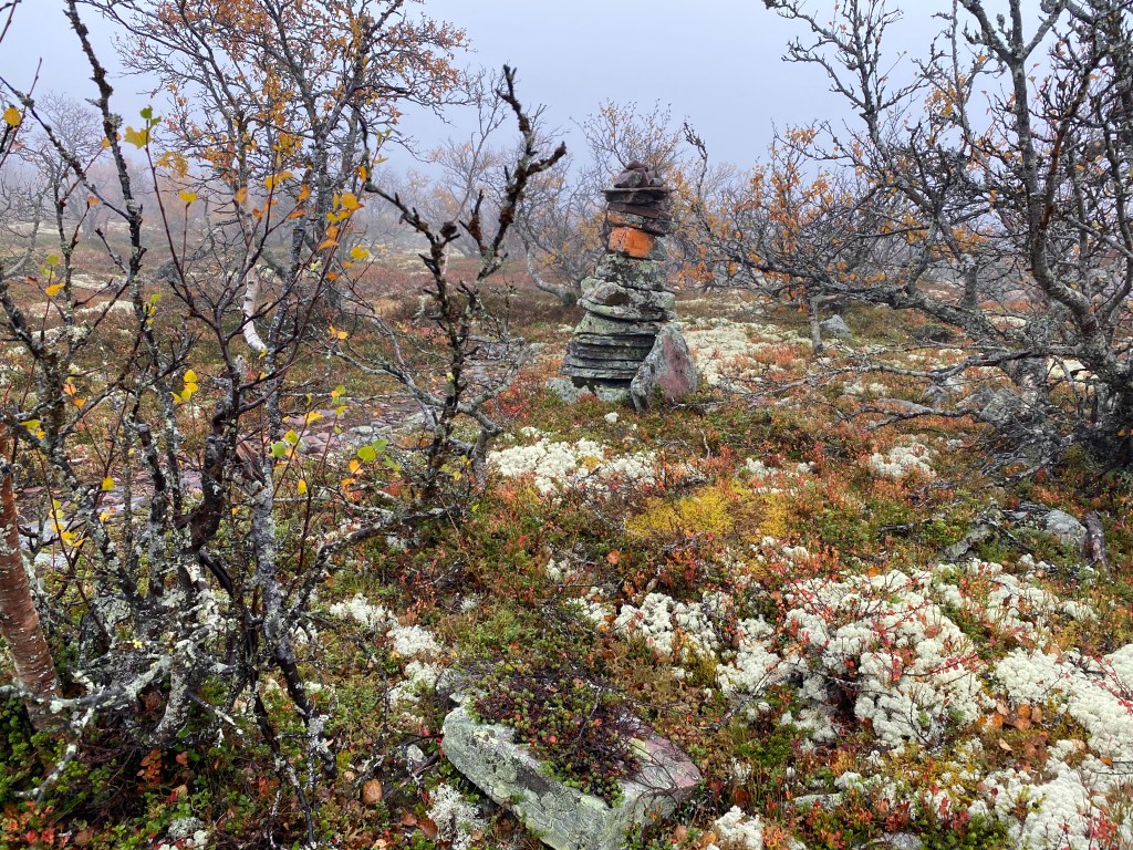Am nächsten Tag brauchten wir alle drei erst einmal Bewegung und wir beschlossen, nach Grövelsjön zu fahren. Wir hatten auf der gestrigen Fahrt schon die vielen Herbstfarben bestaunt, wodurch sich die Landschaft bunt und abwechslungsreich zeigte. Was uns jedoch auf dem Weg Richtung Grövelsjön begegnete, ließ uns staunen und wir legten einige Stopps ein, um diese Farbenpracht auf uns wirken zu lassen. In der Intensität hatten wir alle dies so noch nicht erleben dürfen und hinter jeder Kurve erwartete uns ein neues Naturschauspiel aus gelben und roten Blättern. In Grövelsjön angekommen, parkten wir an der bereits geschlossenen Fjällstation und stiegen zu einer kleinen Runde hinauf ins Fjell. Wir trafen auf halbem Weg ein älteres schwedisches Pärchen, das uns entgegenkam und uns berichtete, dass die letzte Nacht sehr stürmisch mit Schneeregen war und wohl die nächsten Tage so bleiben sollte. Von unserem Aussichtspunkt auf unserer kleinen Tour konnten wir weit auf dem Gegenhang in das baumlose Fjell bis hinein nach Norwegen schauen und genossen still und ehrfürchtig die Farbenpracht, die uns die Natur darbot und die Gesellschaft einiger Rentiere die bis auf 50 m auf uns zuzogen. Ganz zu Freude von Mack natürlich der diese gerne gejagt hätte.