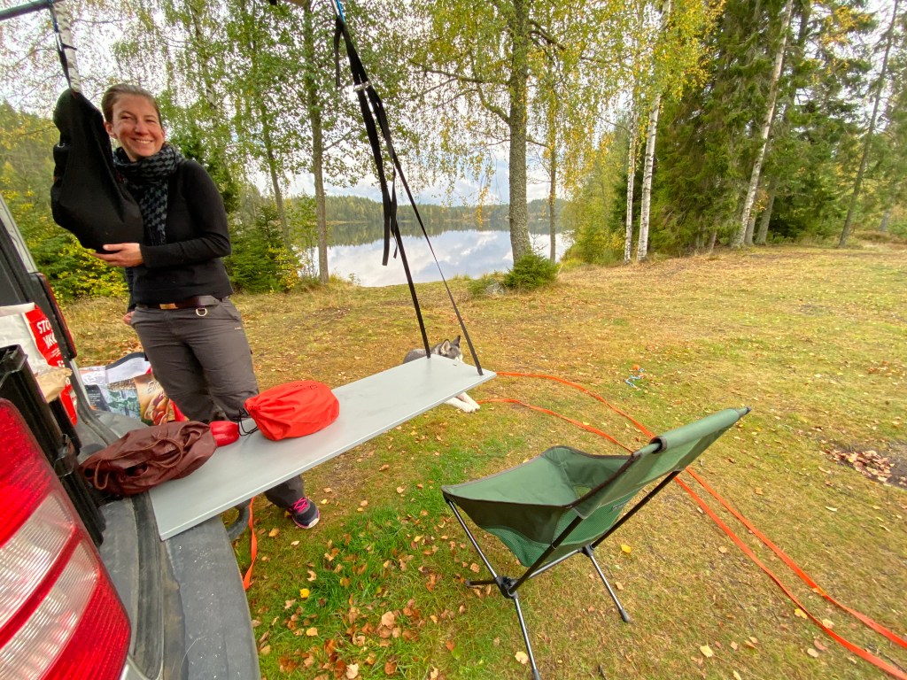 Am nächsten Tag wollten wir Särna erreichen, also ging es für unsere Verhältnisse, sehr früh, gegen 10:30 Uhr bereits los und erreichten dann, doch etwas geschafft abends einen Lagerplatz, die in der Region reichlich zu finden sind. Zu der Jahreszeit ist auf diesen Plätzen eher ruhig und wir hatten daher auch nur einen „Nachbarn“ der etwas neidisch auf unseren Caddy starrte. Wir wollten aber nicht mit ihm tauschen…