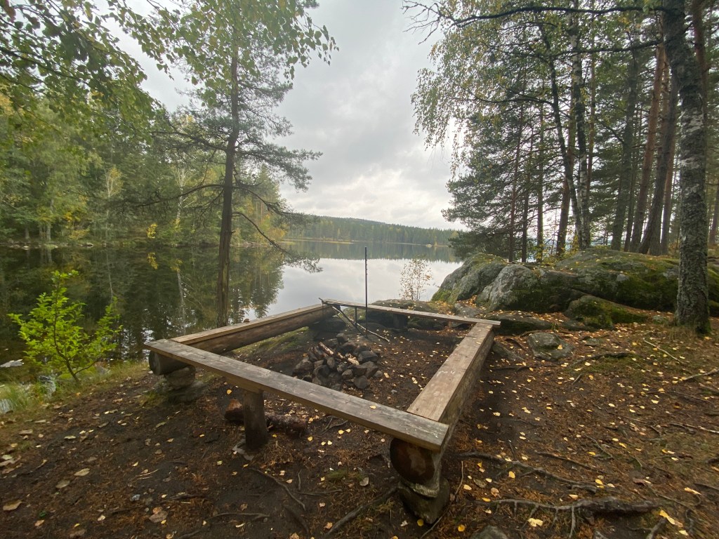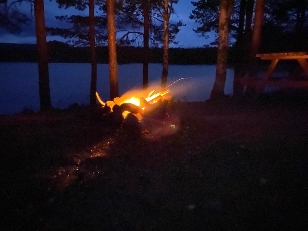 Nachdem wir uns ordentlich den Wind um die Nase wehen ließen und gut gefrühstückt hatten, fuhren wir weiter Richtung Amal, wo wir ein gemütliches Plätzchen am See für die Nacht fanden. Kulinarisch schlossen wir den Abend mit einem richtigen Highlight ab, denn es gab Spaghetti Napoli mit Wienerwürsten liebevoll zubereitet im Trangia. Alsbald verkrochen wir uns auch in unsere Schlafsäcke, denn am nächsten Morgen stand für uns eine Erstbegehung an. Es sollte über den Orsbergetleden zum höchsten „Gipfel“ Dalsland mit 301m gehen. Die Tour führte langsam durch den Wald aufwärts bis zum höchsten Punkt dem sog. Baljäsen, wo eine gemütliche Schutzhütte und eine Picknickbank mit Panoramaaussicht auf uns Wanderer wartete. Nach einer kurzen Rast auf dem „Gipfel“ stiegen wir wieder ab und fuhren erneut zu „unserem“ Plätzchen am See und ließen den Tag ruhig ausklingen.