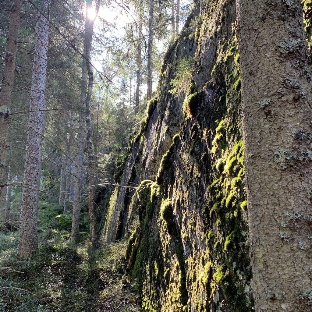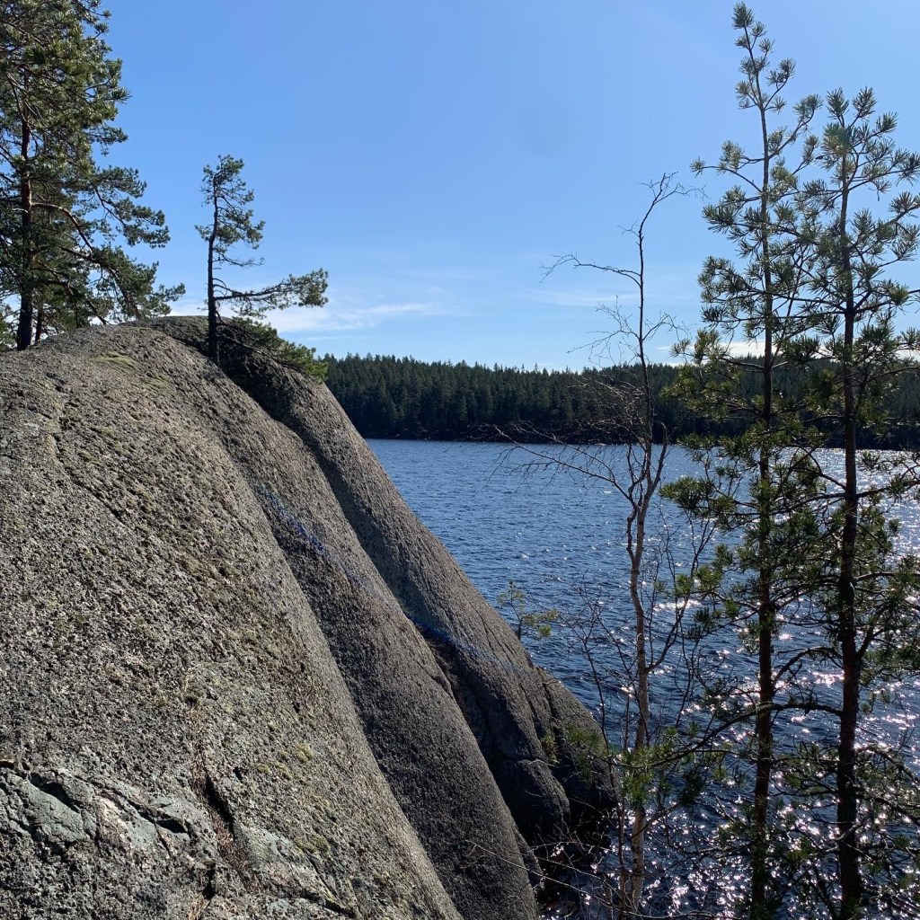 Aber zurück zum Wandern im Nationalpark. Die Wanderungen waren lediglich zwischen 6 und 10 Kilometer lang, aber da es wie gesagt viel rauf und runter ging und viele Wurzeln, Bäume, Steine und Bachläufe gab, musste jeder Schritt gut überlegt sein, um nicht zu stolpern oder auszurutschen. Folglich schaut man mehr nach unten als in die Ferne, sodass wir natürlich auch immer wieder stehen blieben, um einfach mal uns in Ruhe umzugucken. Mack genießt diese Wanderungen auch immer sehr, was man ihm anmerkt und ansieht und spätestens bei den Pausen er ganz schnell die Augen schließt, weil er so erschöpft vom vielen Entdecken ist. Es gibt beeindruckende große Felsen hier, an denen man fast schon ehrfürchtig hochschaut und die moosreichen und grünen Nadel- und Birkenwälder drumherum wirken manchmal fast schon märchenhaft. Wir waren echt super froh, dass wir diesen Nationalpark neu entdeckt haben. Einen Stellplatz für unseren Caddy zum Schlafen fanden wir immer ca. 15 Minuten entfernt an kleinen Seen, die primär zum Angeln genutzt werden.