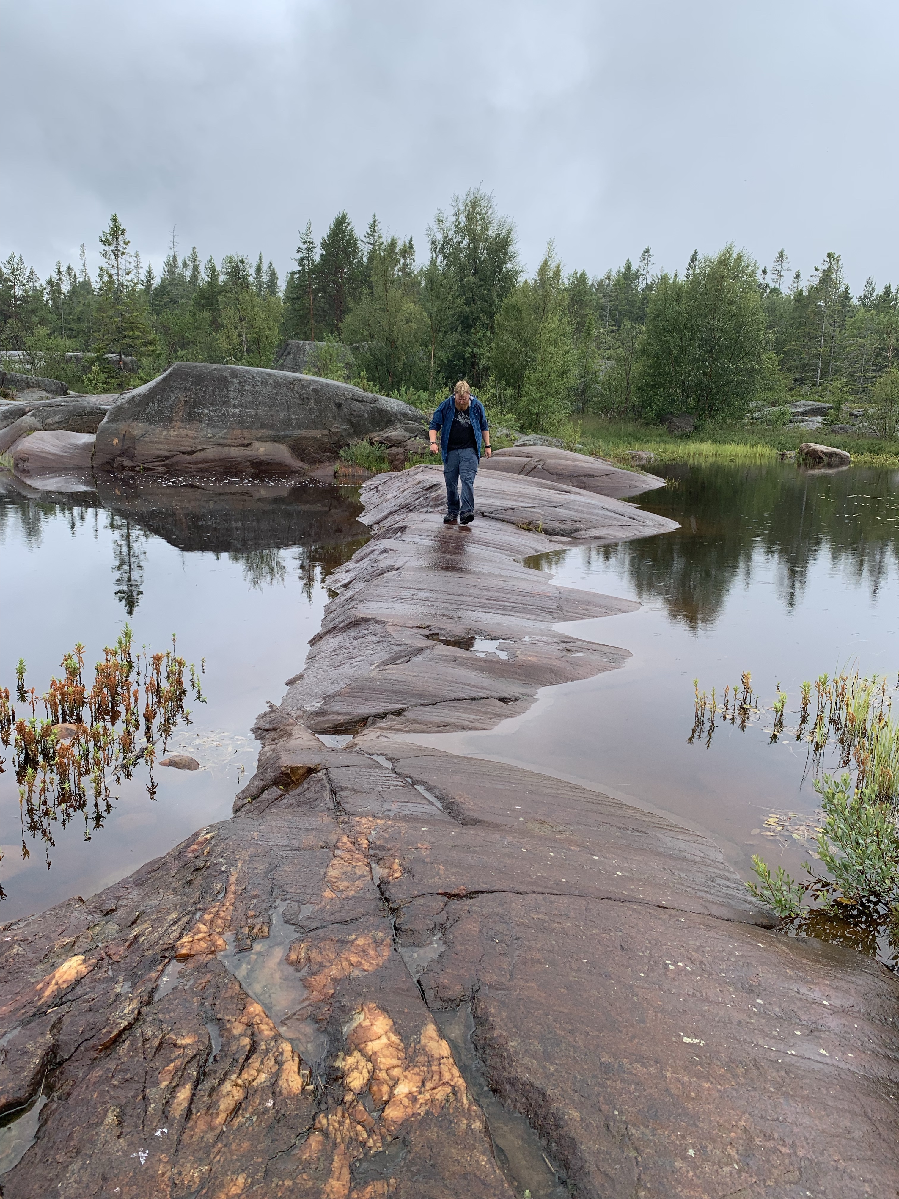 Einen Stellplatz für unseren Caddy hatten wir übrigens direkt am Meerbusen in Kängsön gefunden, etwas nördlich von Luleå. Es war ein super Startpunkt für den Ausflug nach Luleå oder zu einer Wanderung in ein weiteres wunderschönes Naturreservat (Bälingeberget) mit vielen Felsformationen und uralten Bäumen und Weitblick auf den Meerbusen und für den Ausflug zum Weltkulturerbe „Gammelstads Kyrkstad“. Dies ist eine sogenannte Kirchstadt, deren Minihäuschen zum Teil noch bewohnt sind und zum anderen gibt es hier ein wirklich sehr schönes Freilichtmuseum. Schon im 14. Jahrhundert wurde diese Gemeinde zu einem sehr wichtigen Zentrum des Handels, der sich von der Küste bis hinauf in die Berge zur norwegischen Grenze ausdehnte. In Schweden gab es insgesamt 71 Kirchstädte, von denen heute nur noch 16 existieren. Gammelstadt ist Schwedens größte und am besten erhaltene Kirchstadt mit 408 Häuschen. Wir schlenderten durch das Dorf und gingen auch ebenso gern in das Freilichtmuseum. Auf dem großen Platz inmitten des Museums konnte man sich gut vorstellen, wie hier früher und wohl auch noch heute mehrmals im Jahr, die Menschen zusammenkommen und ihre Gemeinschaft aktiv leben und wie früher, als bis hierhin noch das Meer ragte, großes Handelstreiben war. In einigen Häusern hatten sie das Leben von damals nachgebaut bzw. saßen Personen in der damaligen Kluft , die man zu „damals“ befragen konnte. Und eine einfache, aber super spaßige Attraktion für Kinder: ein großer Heuboden war offen, in dem man von einer leichten Anhöhung reinspringen konnte. Die Kinder hatten echt einen riesengroßen Spaß dabei und auch wenn wir nicht springen durften, war es schön zu sehen, dass „Entertaiment“ manchmal so einfach sein kann. Nach den vielen, naturreichen Wandertagen war dieser Ausflug ein schöner, bereichernder Gegensatz und die Ruhe an unserem Stellplatz in Kängsön war im Anschluss auch wieder sehr schön 🙂